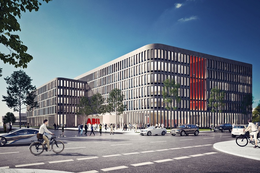 Im Nord-Osten des firmeneigenen Areals in Mannheim-Käfertal errichtete die ABB ein Multifunktionsgebäude für agiles und kundenorientiertes Arbeiten.